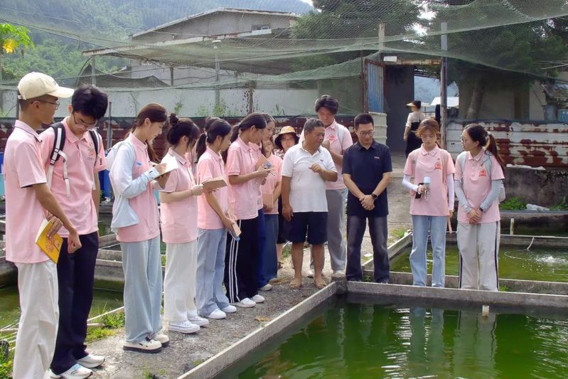 实践队深入基层一线,探寻文化赋能乡村振兴的生动实践。6 月 30 日上午,队员们前往五都村潘六叔金鱼养殖基地,系统学习省级非物质文化遗产 “福州观赏金鱼培育技艺”,深刻感悟传统技艺在激活乡村特色产业、促进农民增收致富中的独特价值。