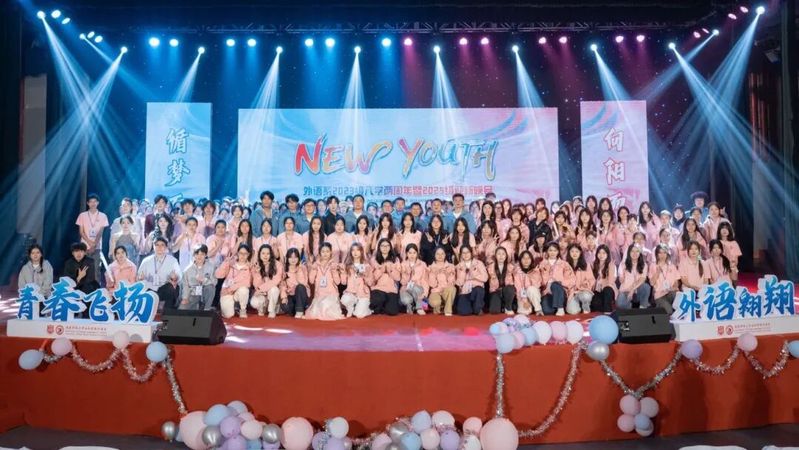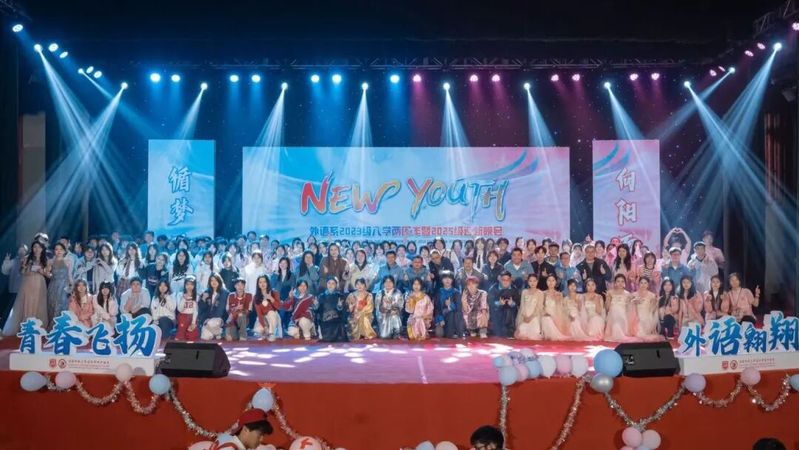 晚会的尾声,全体演职人员与领导老师登台合影,定格下这场青春欢聚的美好瞬间。盛宴虽已落幕,青春舞台才刚刚启幕——这不仅是对2023级学子入学两周年的温暖纪念,也是对2025级新生入学的诚挚祝福。愿每一位外语学子始终怀揣赤子之心,以奋斗为笔,在青春的画卷上书写属于自己的华彩篇章!