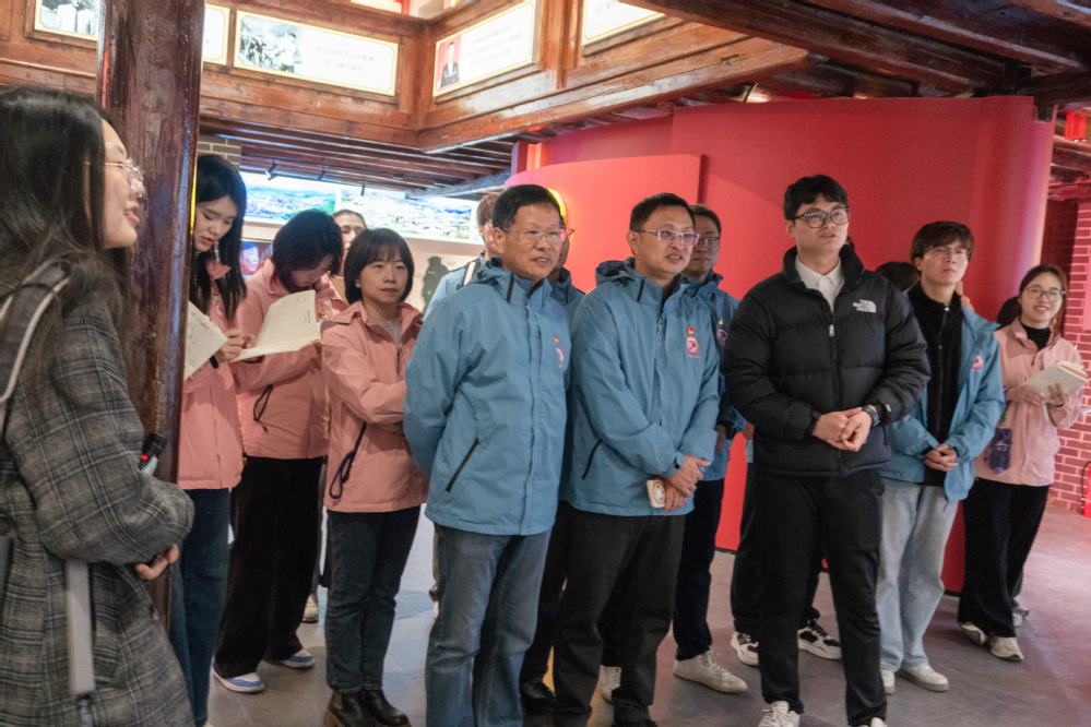 在主题馆讲解员的引导下,师生党员通过丰富的文献史料、影像资料和实物展陈,循着习近平总书记在闽工作期间“七进古田”的基层足迹,系统回顾了“四下基层”工作法从孕育萌发到丰富发展的实践历程。参观结束后,师生党员与主题馆工作人员围绕“四下基层”的古田实践展开深度交流。