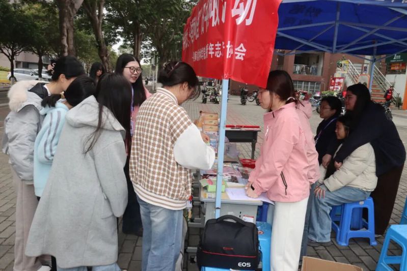 活动伊始,志愿者们便早早抵达现场,有条不紊地完成场地布置:醒目的宣传横幅、清晰的引导标识整齐排列,U型枕、笔记本等抽奖礼品悉数备齐,为活动营造出温暖而热烈的氛围。活动一经启动,同学们便纷纷携着整理好的旧书前来,在志愿者的细致讲解下,大家慷慨捐赠手中书卷,用点滴善举传递公益温度,现场人头攒动,暖意融融。