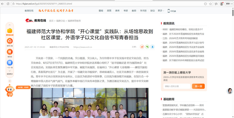 福建师范大学协和学院“开心课堂”实践队:从场馆思政到社区课堂,外语学子以文化自信书写青春担当