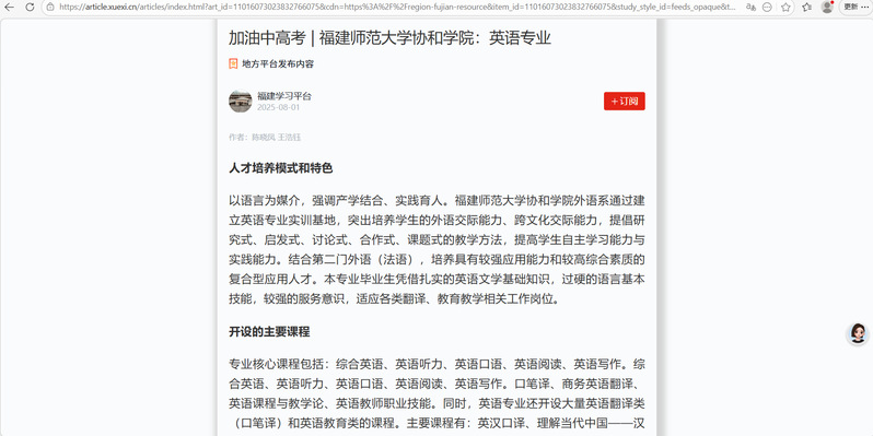 以语言为媒介,强调产学结合、实践育人。福建师范大学协和学院外语系通过建立英语专业实训基地,突出培养学生的外语交际能力、跨文化交际能力,提倡研究式、启发式、讨论式、合作式、课题式的教学方法,提高学生自主学习能力与实践能力。结合第二门外语(法语),培养具有较强应用能力和较高综合素质的复合型应用人才。本专业毕业生凭借扎实的英语文学基础知识,过硬的语言基本技能,较强的服务意识,适应各类翻译、教育教学相关工作岗位。