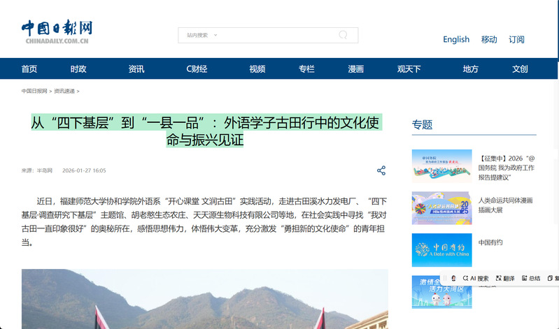 从“四下基层”到“一县一品”:外语学子古田行中的文化使命与振兴见证