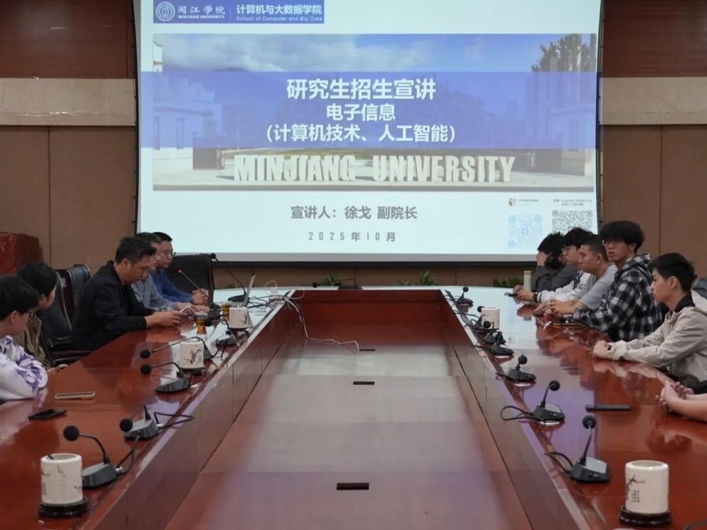 近日,由我系黄艺坤副教授牵头组织的闽江学院研究生报考宣讲会在我系顺利举行,本次宣讲聚焦电子信息专业(计算机技术、人工智能方向),旨在为我系考研备考学子搭建信息沟通桥梁。闽江学院计算机与大数据学院副院长徐戈教授、系副主任熊建辉老师、黄艺坤副教授及我系考研备考学子参与本次活动。