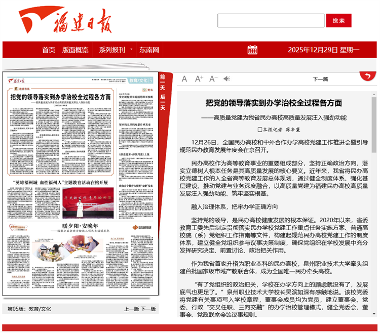 《福建日报》:把党的领导落实到办学治校全过程各方面——高质量党建为我省民办高校高质量发展注入强劲动能